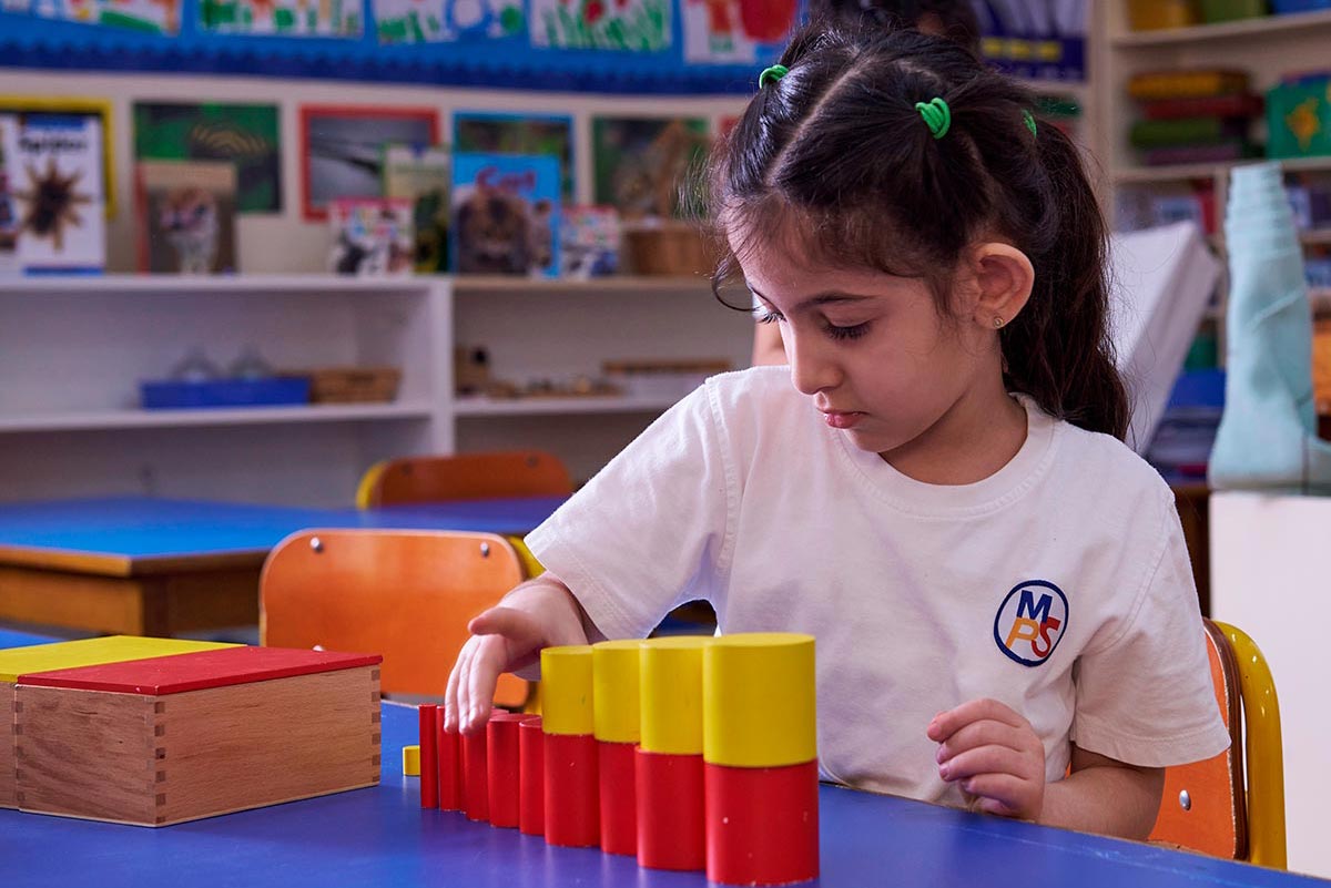 One of the main goals of Montessori education is to enable children to become independent from a very young age. In order to achieve this, the teacher places the materials in an orderly way on the shelves, enabling the child to independently select something that has piqued his interest. Children are free to choose the activities they wish to work with, and are allowed the freedom to repeat the same activity over and over again, enabling the child to see what he did not at first notice.